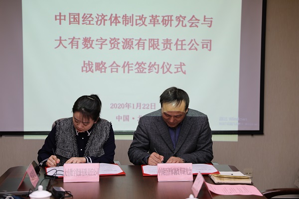 2020年1月22日上午,中國(guó)經(jīng)濟(jì)體制改革研究會(huì)與理事單位大有數(shù)字資源有限責(zé)任公司戰(zhàn)略合作備忘錄簽署儀式在我會(huì)會(huì)議室舉行。我會(huì)會(huì)長(zhǎng)彭森、常務(wù)副會(huì)長(zhǎng)兼秘書(shū)長(zhǎng)趙艾、大有公司總經(jīng)理張長(zhǎng)江等見(jiàn)證簽約,并就新形勢(shì)下如何充分發(fā)揮各自優(yōu)勢(shì),拓寬合作領(lǐng)域,實(shí)現(xiàn)資源共享等方面的事宜再次進(jìn)行了充分交流,進(jìn)一步深化了合作共識(shí)。簽署儀式由趙艾主持。