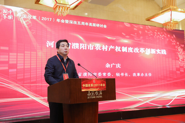 河南省濮陽市委常委、秘書長、改革辦主任余廣慶介紹了濮陽特色鮮明的農(nóng)村集體產(chǎn)權(quán)制度改革經(jīng)驗(yàn):在推進(jìn)農(nóng)村集體產(chǎn)權(quán)制度改革中,濮陽市農(nóng)村黨支部成為基層黨建工作的一個(gè)重大創(chuàng)新,市委領(lǐng)導(dǎo)親自上陣親自督辦、跟蹤進(jìn)度;建成了比較完善的市縣鄉(xiāng)三級產(chǎn)權(quán)交易平臺,充分釋放農(nóng)村要素活力;依托市縣兩級黨校邀請專家解讀改革政策改革事件推動農(nóng)村改革。