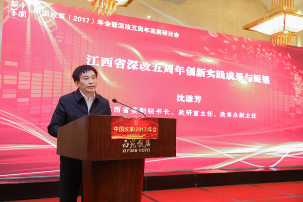江西省委副秘書長、政研室主任、改革辦副主任沈謙芳指出,過去的五年,特別是近兩年來,江西省認(rèn)真落實(shí)習(xí)近平總書記的重要指示要求,把全面深化改革作為重大的政治任務(wù)采取了一系列硬措施,推動各項(xiàng)改革、落實(shí)見效。江西省委省委改革辦自覺對標(biāo)中央精神確保中央重大改革部署落實(shí)見效;聚焦重點(diǎn)領(lǐng)域關(guān)鍵環(huán)節(jié)取得一批有影響實(shí)踐成果;建立健全改革落實(shí)機(jī)制取得了一批有價(jià)值的制度成果。