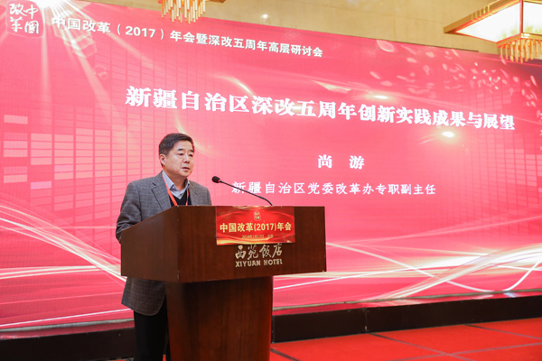 新疆自治區(qū)黨委改革辦專職副主任尚游介紹了新疆的特色改革領(lǐng)域:在機(jī)構(gòu)設(shè)置上,針對新疆穩(wěn)定問題設(shè)立社會治理體制改革專項(xiàng)小組;多措并舉推進(jìn)民族團(tuán)結(jié),建立了民族團(tuán)結(jié)一家親長效機(jī)制,豐富了民族團(tuán)結(jié)的載體和平臺;創(chuàng)新宗教事務(wù)教育管理服務(wù)辦法,積極推進(jìn)央企屬地建設(shè);探索政府主導(dǎo)轉(zhuǎn)移就業(yè)模式;大力推進(jìn)鄉(xiāng)鎮(zhèn)站所管理體制改革。