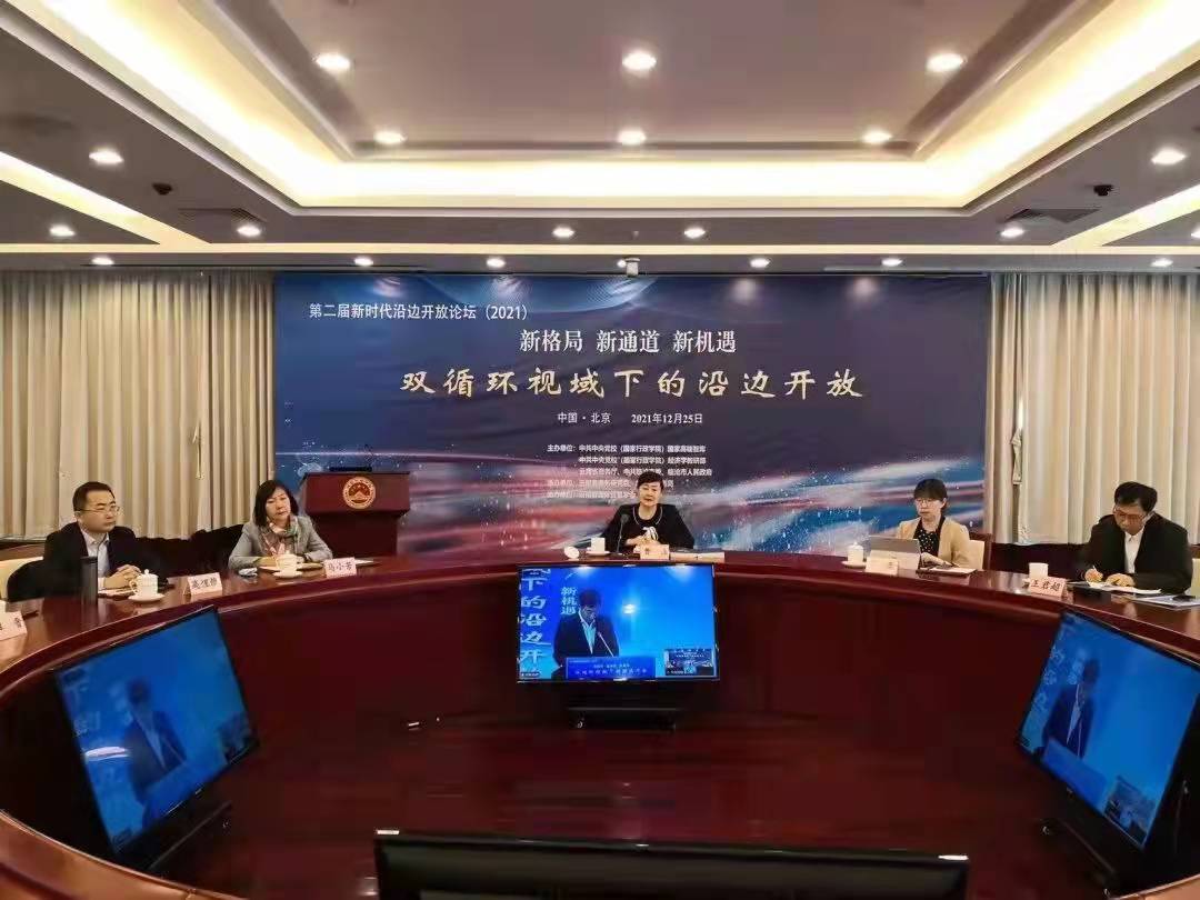 2021年12月25日,我會常務(wù)副會長兼秘書長趙艾應(yīng)邀出席新時(shí)代沿邊開放論壇,并以線上視頻連線的方式作題為“沿邊開放新時(shí)代新任務(wù)新要求”主旨演講。中共中央黨校(國家行政學(xué)院)經(jīng)濟(jì)學(xué)教研部主任、教授、博士生導(dǎo)師韓保江,云南省商務(wù)廳黨組書記、廳長李晨陽,中共臨滄市委副書記、臨滄市人民政府代理市長杜建輝作論壇開幕式致辭。中共中央黨校(國家行政學(xué)院)經(jīng)濟(jì)學(xué)教研部副主任、教授、博士生導(dǎo)師曹立作閉幕總結(jié)。