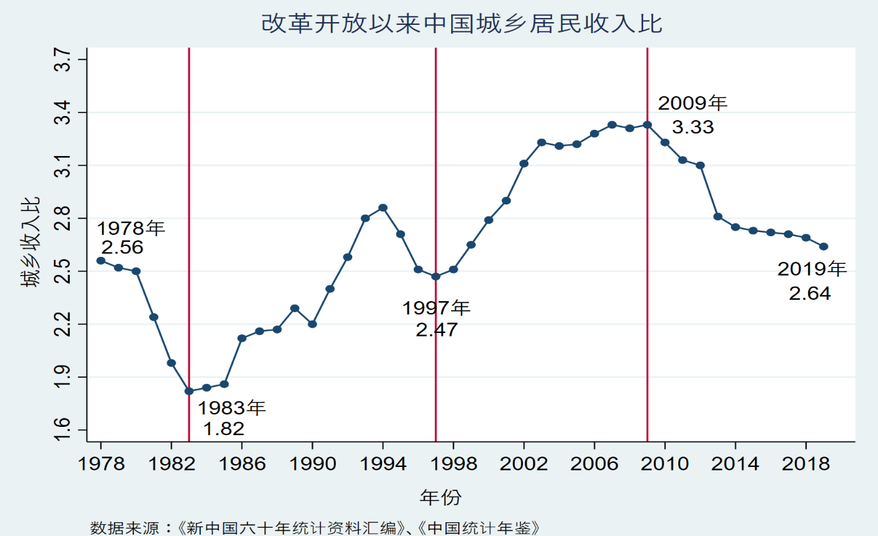 圖5:改革開放以來中國城鄉(xiāng)居民收入比