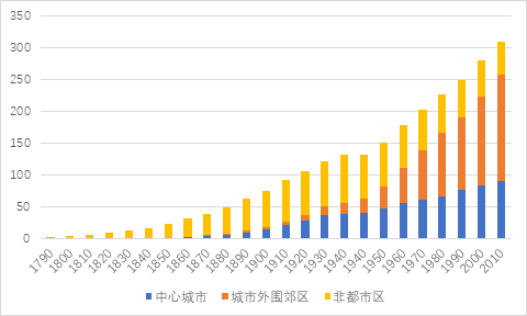 還有鄉(xiāng)村和小城鎮(zhèn),在郊區(qū)化過程中這些新形態(tài)開始快速增長。