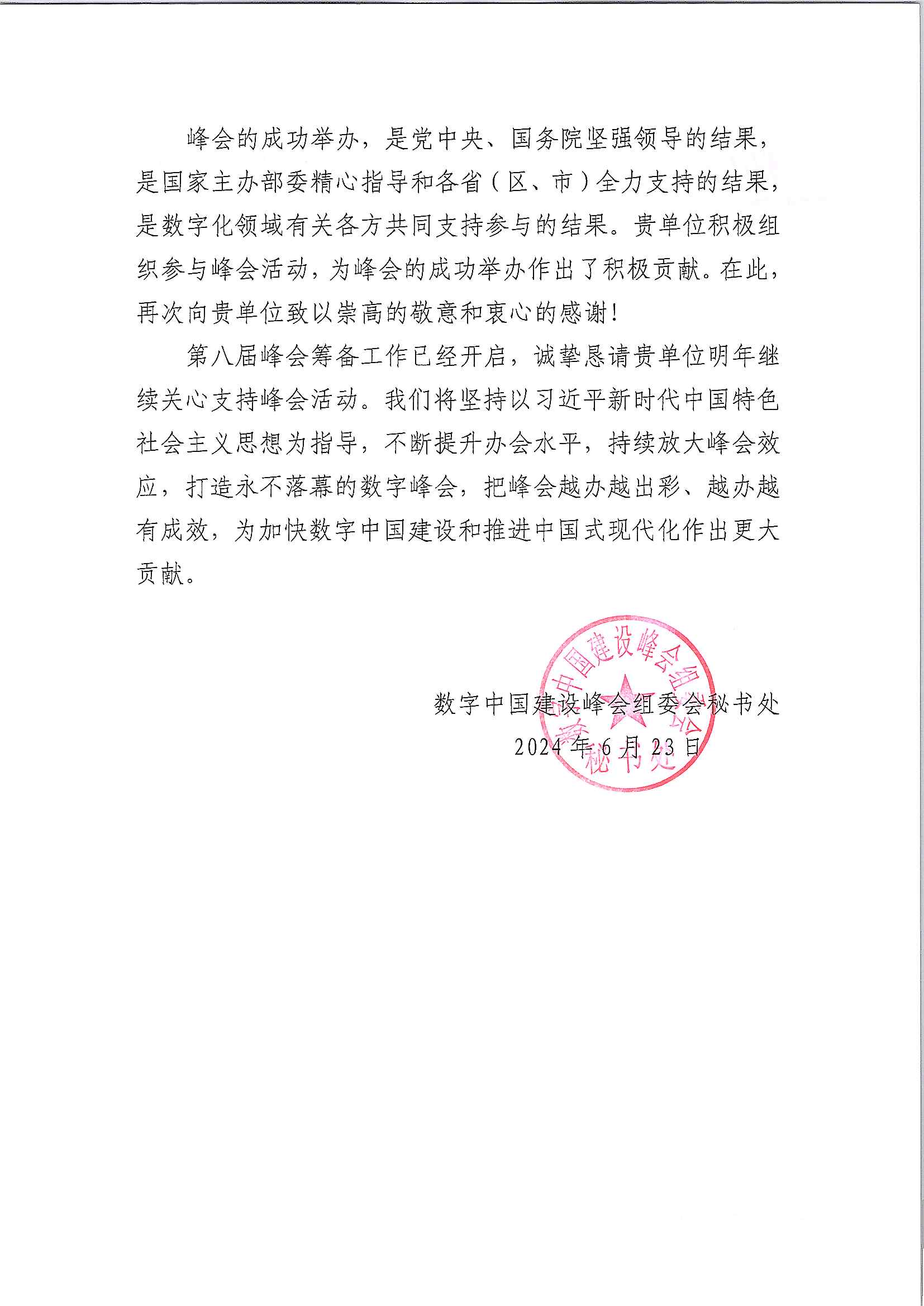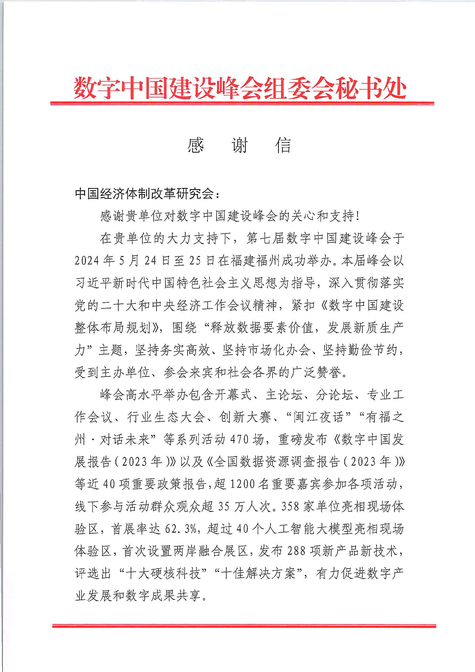 我會(huì)收到數(shù)字中國(guó)建設(shè)峰會(huì)組委會(huì)感謝信
