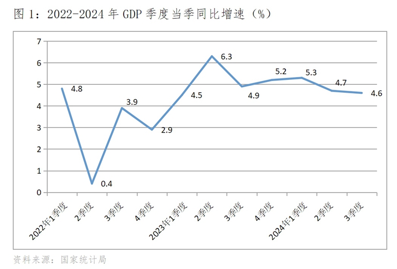 (三)增速上年同期基數(shù)較高。上年四季度GDP增速是自2022年以來季度GDP第二快的增速,同比增長5.2%,第一快的增速是上年二季度的增速,增長6.3%。由于上年二季度增速基數(shù)較高,今年二季度GDP增速為4.7%,回落了1.6個百分點。而如果今年四季度GDP增長5.5%,意味著GDP增速比上年四季度回升了0.3個百分點。從這一對比分析中就可看出,要實現(xiàn)今年四季度GDP增長5.5%還面臨著基數(shù)較高因素的影響。