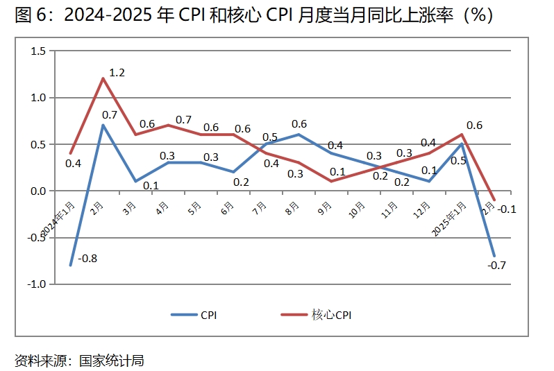 (四)CPI由上漲轉(zhuǎn)為下降。2月份,CPI同比下降0.7%,而1月份上漲了0.5%, CPI出現(xiàn)了由上漲轉(zhuǎn)為下降,有今年春節(jié)與上年春節(jié)錯(cuò)月因素的影響。其中食品價(jià)格下降3.3%,而上月上漲0.4%;非食品價(jià)格下降0.1%,而上月上漲0.5%。2月份,核心CPI同比下降0.1%,而1月份上漲0.6%。這其中盡管有春節(jié)錯(cuò)月因素的影響,但CPI下降特別是核心CPI首次出現(xiàn)的下降,還是說(shuō)明擴(kuò)大需求還需要進(jìn)一步加大力度。