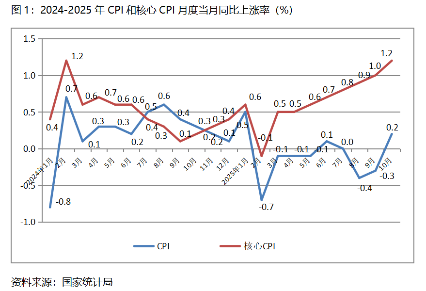 一、CPI漲幅持續(xù)回升。10月份,CPI同比上漲0.2%,9月份為下降0.3%,8月份為下降0.4%;核心CPI同比上漲1.2%,比9月份上漲1.0%回升了0.2個(gè)百分點(diǎn),9月份漲幅比8月份上漲0.9%回升了0.1個(gè)百分點(diǎn)。CPI和核心CPI漲幅持續(xù)保持回升的態(tài)勢(shì),表明經(jīng)濟(jì)運(yùn)行活力有所增強(qiáng),但由于漲幅均較為有限,加之較長時(shí)期處于較低水平,經(jīng)濟(jì)運(yùn)行活力總體仍比較弱。