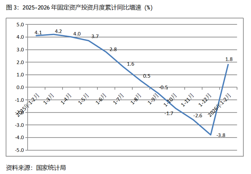 1-2月份,固定資產(chǎn)投資累計(jì)增速快于或持平固定資產(chǎn)投資總額增長(zhǎng)1.8%的行業(yè)共6個(gè),即農(nóng)林牧漁業(yè)增長(zhǎng)16.6%,電力、熱力、燃?xì)饧八纳a(chǎn)和供應(yīng)業(yè)增長(zhǎng)13.1%,采礦業(yè)增長(zhǎng)13.0%,交通運(yùn)輸、倉(cāng)儲(chǔ)和郵政業(yè)增長(zhǎng)9.1%,水利、環(huán)境和公共設(shè)施管理業(yè)增長(zhǎng)8.3%,制造業(yè)增長(zhǎng)3.1%。