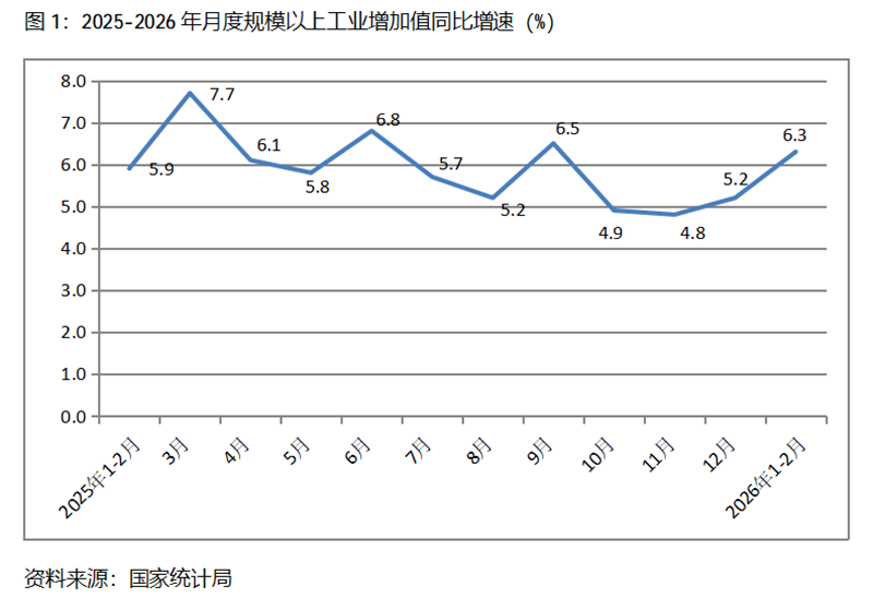 一、工業(yè)增速持續(xù)回升。1-2月份,規(guī)模以上工業(yè)增加值同比增長(zhǎng)6.3%,比上年12月份增長(zhǎng)5.2%回升了1.1個(gè)百分點(diǎn),上年12月份比上年11月份增長(zhǎng)4.8%回升了0.4個(gè)百分點(diǎn)。從工業(yè)三大門類看,采礦業(yè)、制造業(yè)和電力、熱力、燃?xì)饧八a(chǎn)和供應(yīng)業(yè)增速比上年12月份全面回升,1-2月份,采礦業(yè)同比增長(zhǎng)6.1%,比上年12月份增長(zhǎng)5.6%回升0.5個(gè)百分點(diǎn);制造業(yè)增長(zhǎng)6.6%,比上年12月份增長(zhǎng)6.4%回升0.2個(gè)百分點(diǎn);電力、熱力、燃?xì)饧八a(chǎn)和供應(yīng)業(yè)增長(zhǎng)4.7%,比上年12月份增長(zhǎng)2.3回升2.4個(gè)百分點(diǎn)。